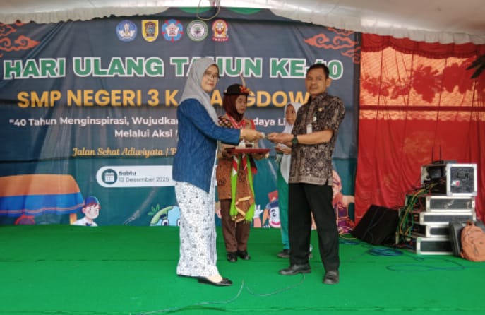 Klaten – Bhayangkara-lipsus.com – Dalam rangka memeringati Hari Ulang Tahun ke 40 SMPN 3 Karangdowo mengadakan acara jalan sehat yang melibatkan seluruh warga sekolah (siswa, guru, staf) pada Sabtu, (13/12/2025) dengan mengambil tema “40 Tahun Menginspirasi Wujudkan Sekolah Berbudaya Lingkungan Melalui Aksi dan Kreasi”