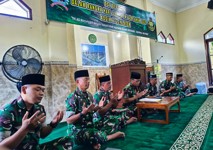 KLATEN — Bhayangkara-lipsus.com – Kodim 0723/Klaten menyelenggarakan kegiatan doa bersama dalam rangka memperingati Hari Juang TNI Angkatan Darat Tahun 2025. Pelaksanaan doa bersama dilakukan secara serentak di beberapa lokasi internal Kodim 0723/Klaten, disesuaikan dengan keyakinan masing-masing prajurit dan PNS. Jumat (12/12/2025)