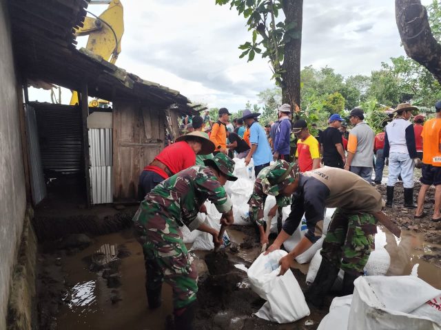 “Penanganan tanggul jebol ini kami lakukan secara bersama-sama melalui karya bakti agar dampak yang ditimbulkan dapat segera diminimalisir. Kegiatan ini juga menjadi bukti kuatnya sinergitas antara TNI, Polri, instansi terkait, relawan dan masyarakat dalam menjaga keselamatan lingkungan serta membantu warga yang terdampak,” tegas Kapten Inf Sukimanto.