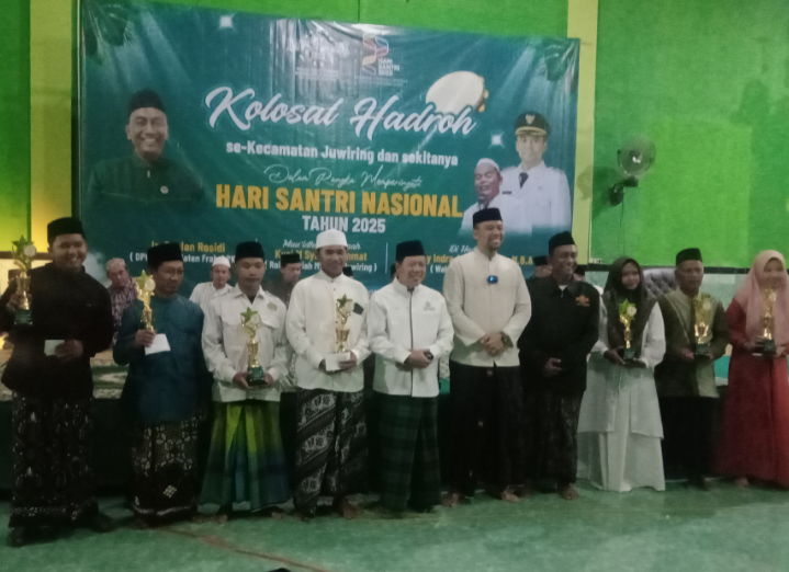 KLATEN – Bhayangkara-lipsus.com – Dalam rangka memperingati Hari Santri Nasional 2025 NWC NU Juwiring gelar Kolosal hadroh yang diikuti 23 kelompok hadroh dari seluruh Kecamatan Juwiring, kegiatan di laksanakan di gedung NU Juwiring pada Minggu 26 Oktober 2025